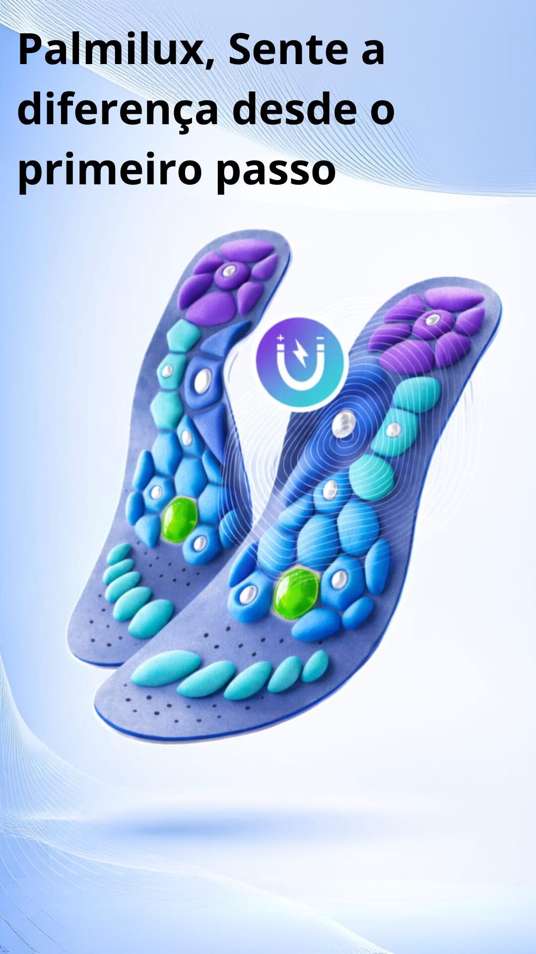 Foi esta a inspiração para incorporar ímanes nas palmilhas Palmilux, em pontos de pressão correspondentes a partes específicas do corpo, para que possa usufruir de um alívio das dores ao longo de todo o dia.