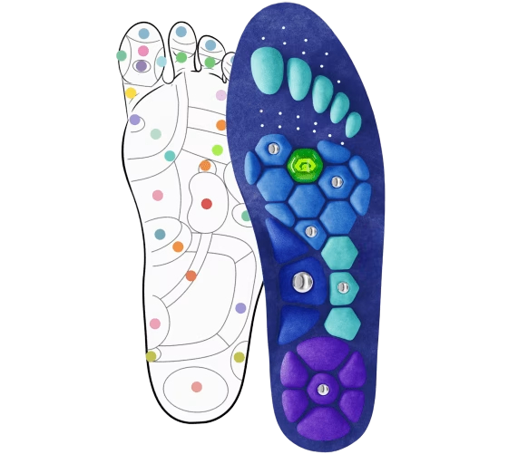 As palmilhas Palmilux foram concebidas para oferecer um maior apoio aos pés, proporcionando simultaneamente mais conforto a quem sofre de diversos problemas, como a fascite plantar e desconforto geral nos pés. As áreas amortecidas com ímanes de acupressão proporcionam conforto e apoio onde é mais necessário.